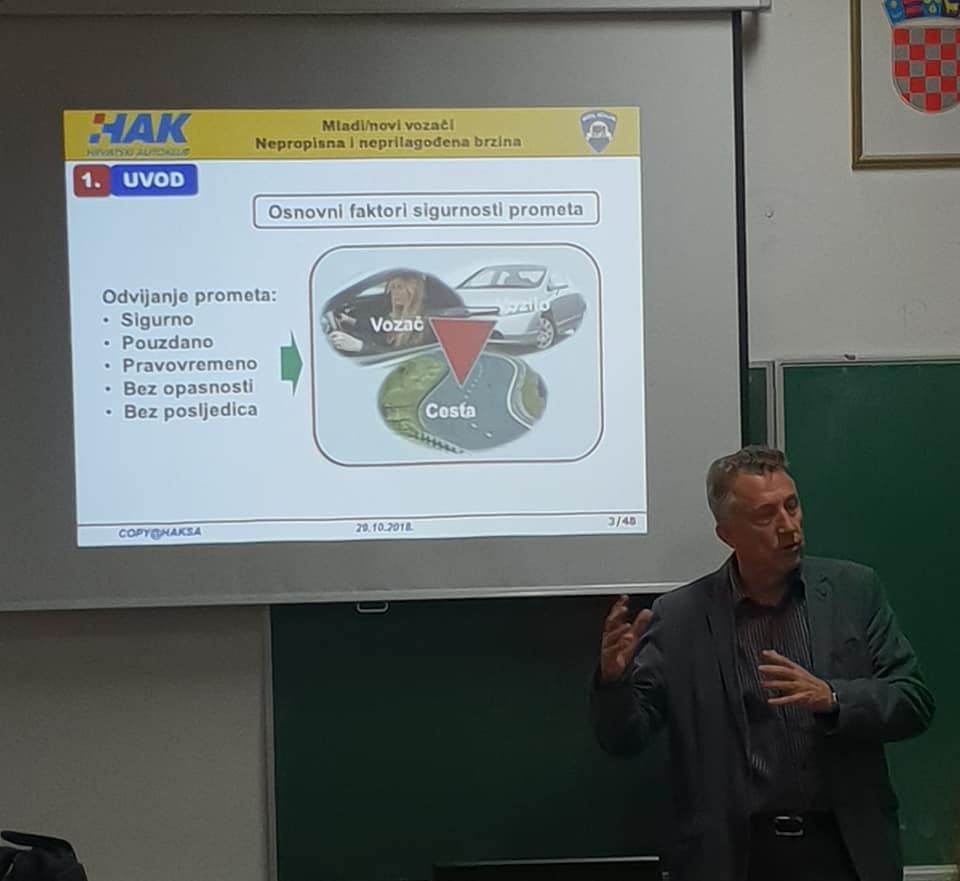 Za polaznike naše autoškole organizirali smo edukativno predavanje gostujućeg predavača iz HAK-a na temu nepropisna i neprilagođena brzina. Svaki sudionik edukacije na poklon je dobio USB.